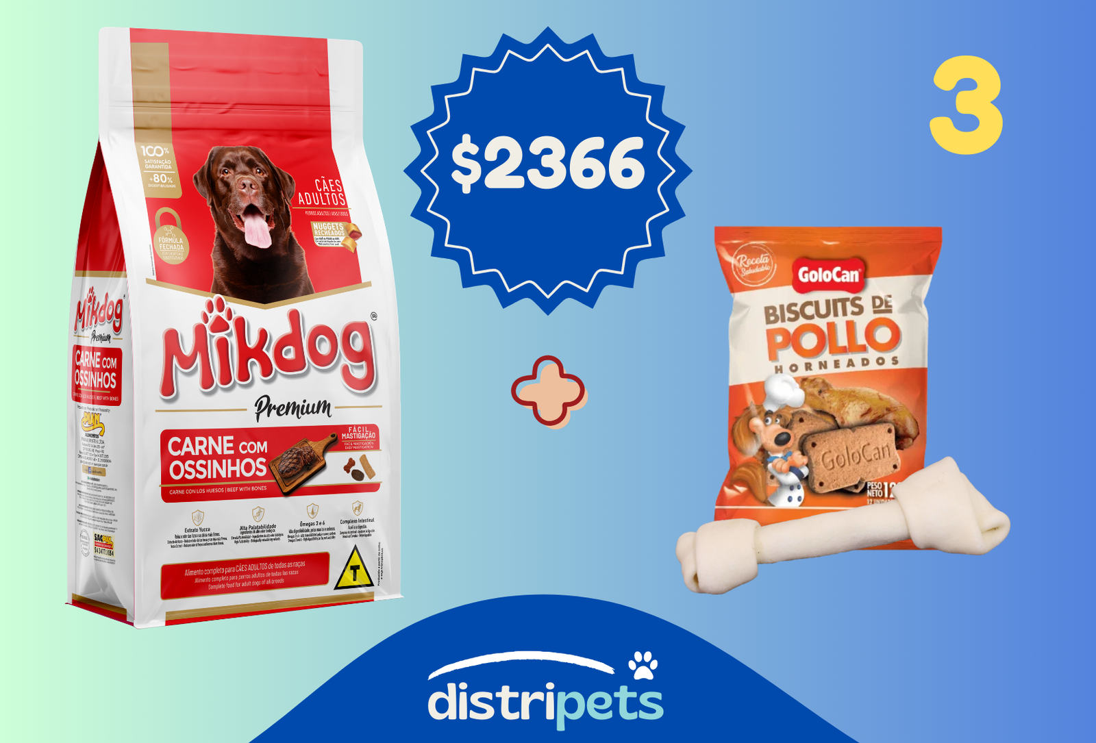 Combo 3 CategoríasSuper Combos Perros Línea Biofresh Especial Biofresh Perro Adulto Biofresh Cachorro Biofresh Light Biofresh Castrado Biofresh Senior Perro adulto Estándar Premium Premium Especial Super Premium Perro cachorro Estándar Premium Super Premium Perro adulto raza pequeña Estándar Premium Super Premium Gatos Línea Biofresh Especial Biofresh Gato Senior Biofresh Gato Adulto Biofresh Gato Cachorro Biofresh Gato Castrado Gato adulto Estándar Premium Premium especial Super Premium Gato cachorro Estándar Premium Especial Super Premium Gato adulto castrado Estándar Premium Premium Especial Super Premium Sanitarios Piedra clásica Aglomerantes Gel Pellet madera Snacks Bocaditos Huesos Alimentos Húmedos Cremas Paté Salsas Yogurt helados Accesorios Juguetes Rascadores Higiene Contacto General Combo 3$2.366 ALIMENTO + HUESO + SNACK 1 alimento Mikdog Premium 20 kg para perro adulto 1 hueso digerible 1 Bocadito Golocan 100 grs ¡Aprovechá este Combo por tiempo limitado! (imagen meramente ilustrativa) Combo 3 cantidad Comprar ahora SKU: 292-0 Categorías: General, Super Combos Productos relacionados Mikdog Adulto Premium 7 kg $916 Añadir al carrito ¡Oferta! Biofresh Cachorro Raza Pequeña $486 – $3.591 Seleccionar opciones Mikcat Mix Premium c/ snacks rellenos $1.319 – $3.029 Seleccionar opciones Salsa Mikdog Premium perro cachorro 100 grs caja 18 unidades $792 Añadir al carrito